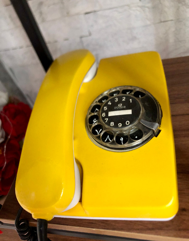 تلفن چرخشی ،تلفن قدیمی ،تلفن رومیزی زرد قدیمی،تلفن خاص،تلفن زرد